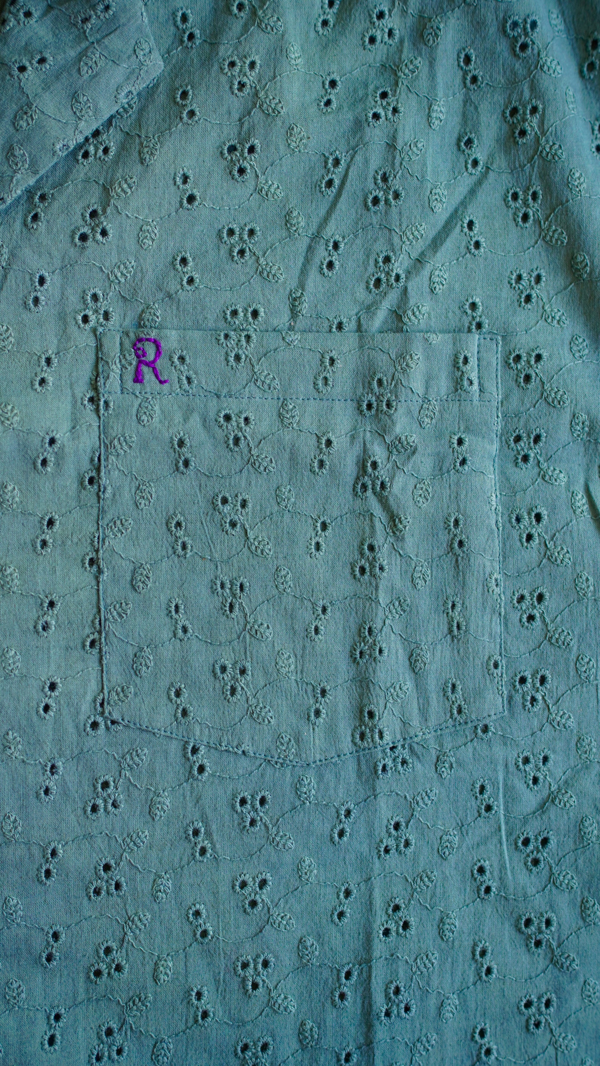 Perfect for summer, our airy camp collar shirt is here to celebrate you in full bloom. Made with 100% cotton fabric that features embroidery and cutwork, and dyed using all natural ingredients, we found the perfect interplay color and texture. A hand embroidered monogram on the pocket adds a bit of contrast, this top is a great if you're trying to be outside and stay breezy.