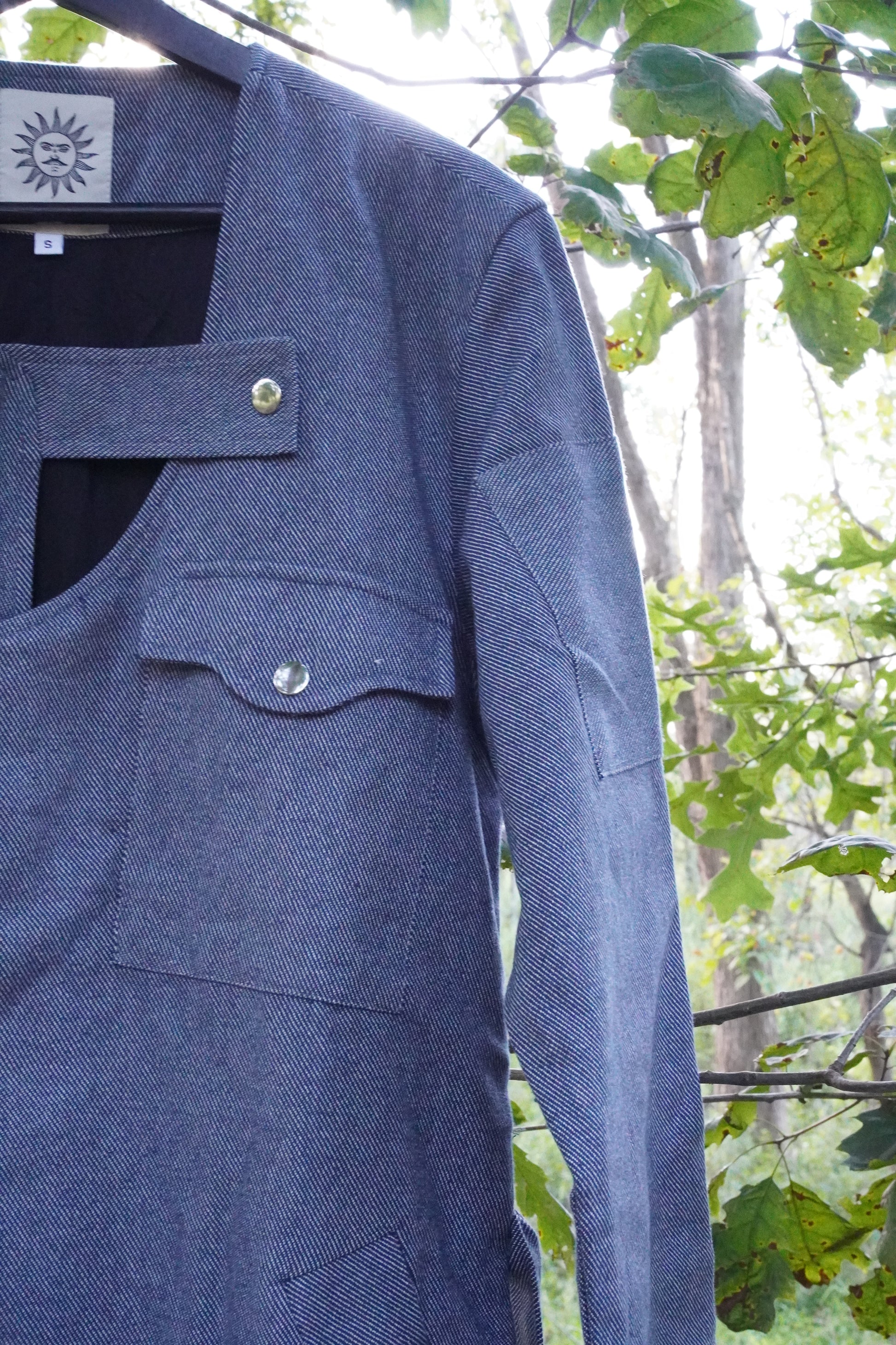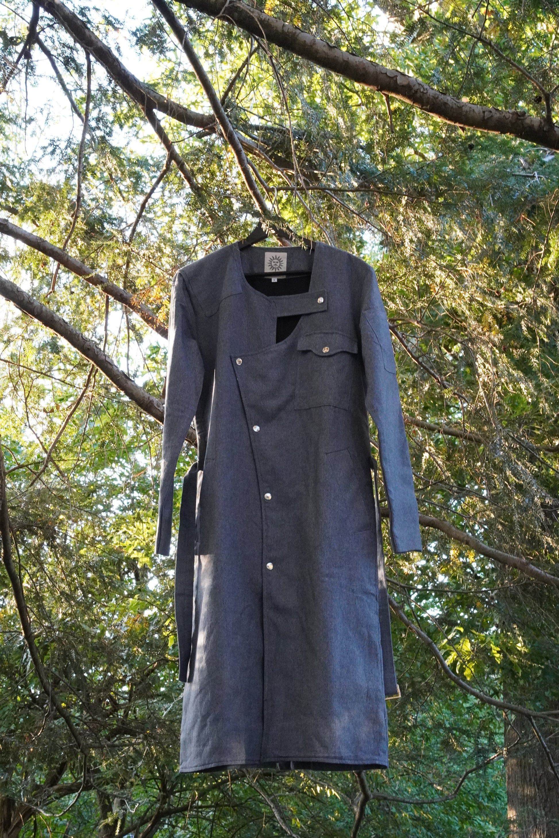 Meant for your morning walks and nights out, the asym long coat is a blend of comfort and function. Made from durable cotton fabric handwoven by carpet weavers in Erode, in our iconic asymmetrical silhouette, the piece is a perfect staple piece for your closet, built to last.